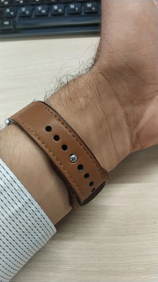 неплохой ремешок, конечно сразу понятно что это кожа молодого дермонтина, но я без претензий, за такую цену сойдёт, доставка около месяца до Москвы. Основной плюс это застёжка, со времени ми банда второго испытываю любовь к такого вида замкам, и не давит и по креплению довольно надёжно и не громоздко.