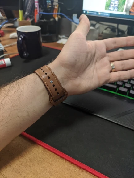 Отличный ремешок из натуральной кожи. Я даже не ожидал, что действительно из кожи будет. С часами очень стильно смотрится. Дальше посмотрим как себя будет вести. Надеюсь прослужит больше года.