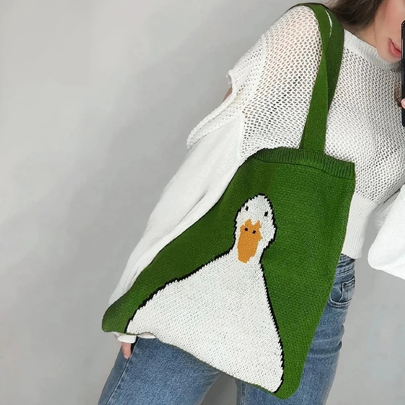 Милая вязаная зеленая сумка с изображением утки из мультфильма, сум...