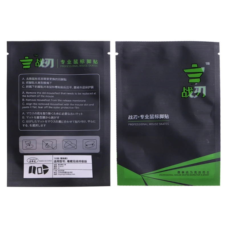 1. Этот продукт является заменяемой ногой мыши. После удаления оригинальной наклейки для ног мыши очистите нижнюю часть корпуса спиртовым хлопком, который прилагается в посылка, а затем вставьте Новые ножки мыши.