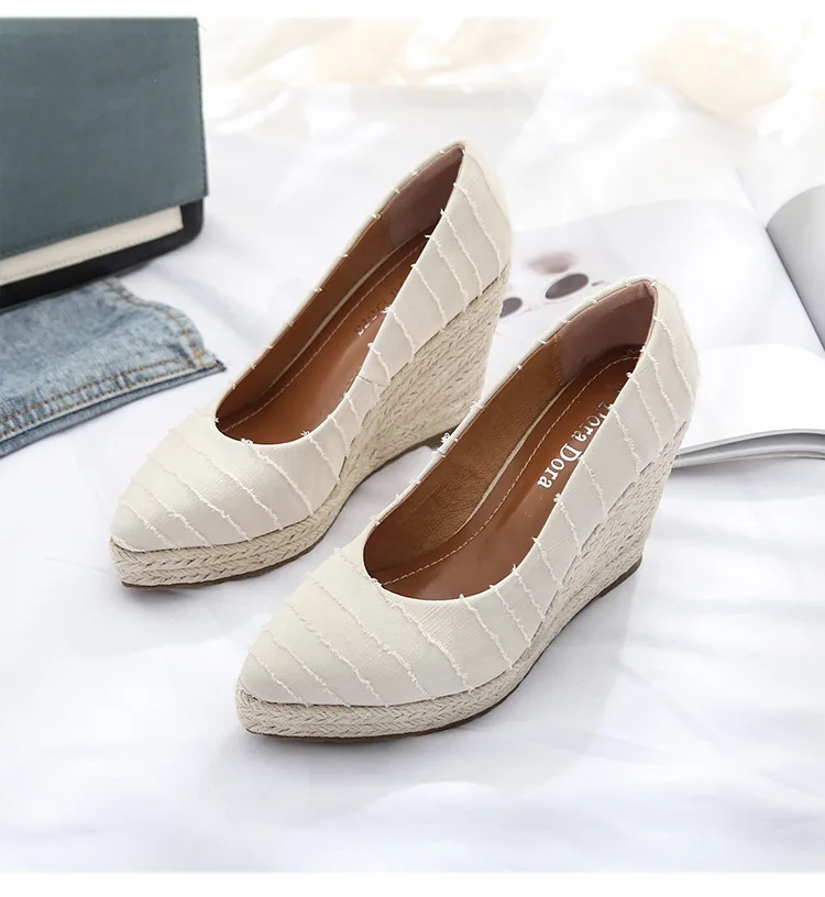 Эспадрильи на танкетке женские, туфли на толстой высокой платформе, с закрытым носком, из соломенной ткани, для весны и осени, 2021