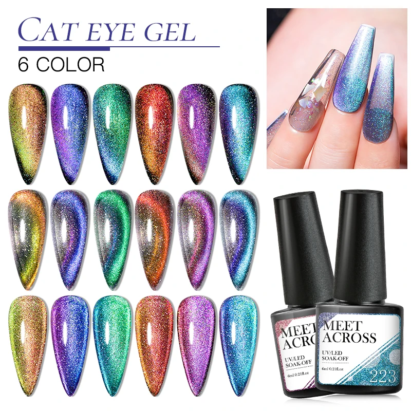 MEET ACROSS Гель-лак для ногтей "кошачий глаз", лазерные магнитные Лаки 5D, отмачиваемые УФ-светодиодные мерцающие магнитные Лаки, лак для красоты и дизайна