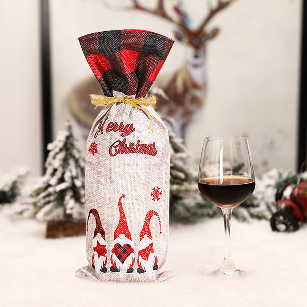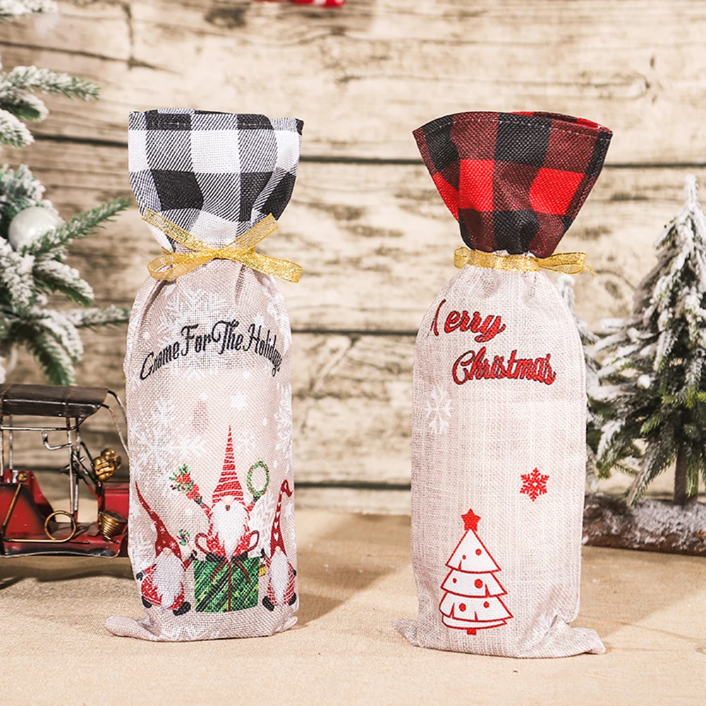 Рождественские подарочные пакеты, держатель, крышка для винной буты...