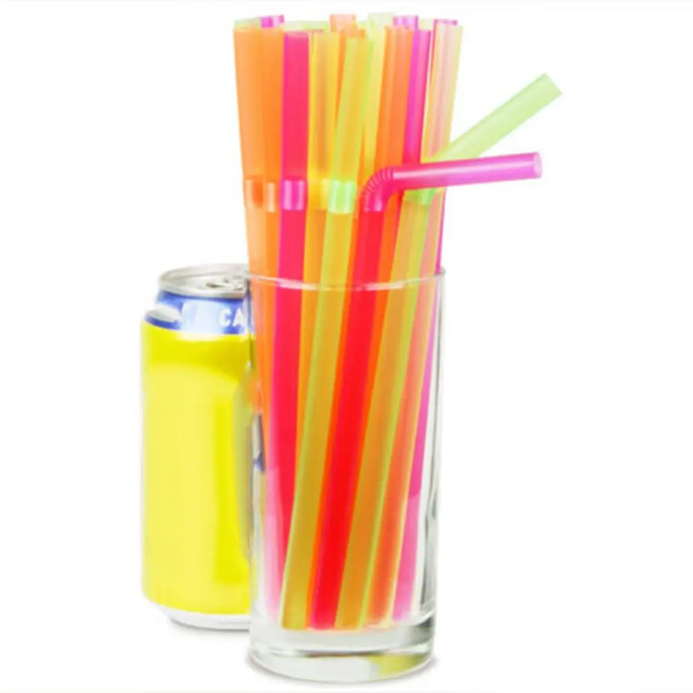 100 шт. флуоресцентные пластиковые соломинки, гибкие одноразовые зеркальные цветные консервированные напитки, напиток