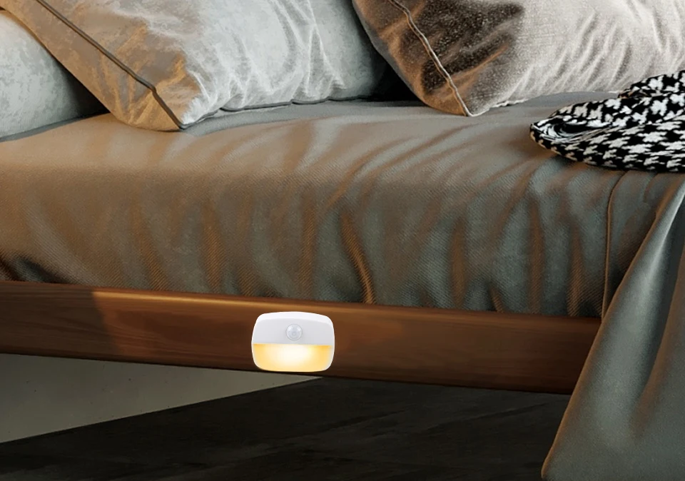 Отличный ночной светильник. Четко срабатывает только в темноте на движение. Регулируется яркость свечения. Тёплый желтый свет