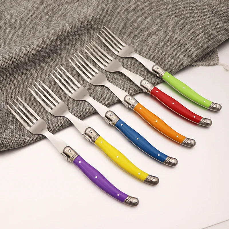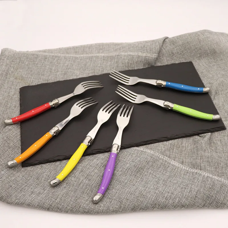 Вилки Laguiole для стейка, 6 шт., Набор радужных столовых вилок, красочные столовые приборы, вилки из нержавеющей стали для бара, столовая посуда, набор для ресторана и дома