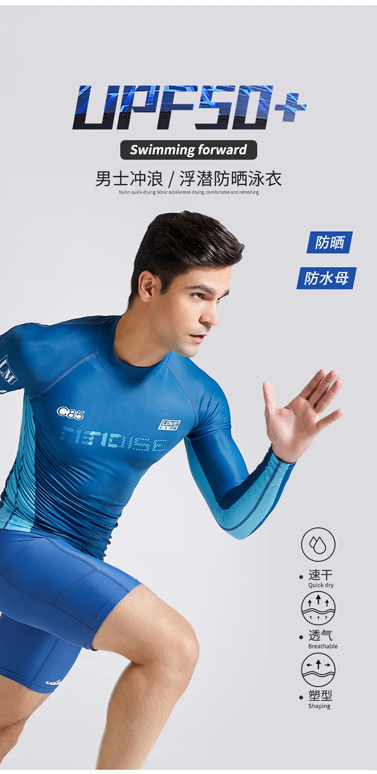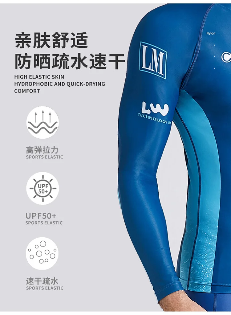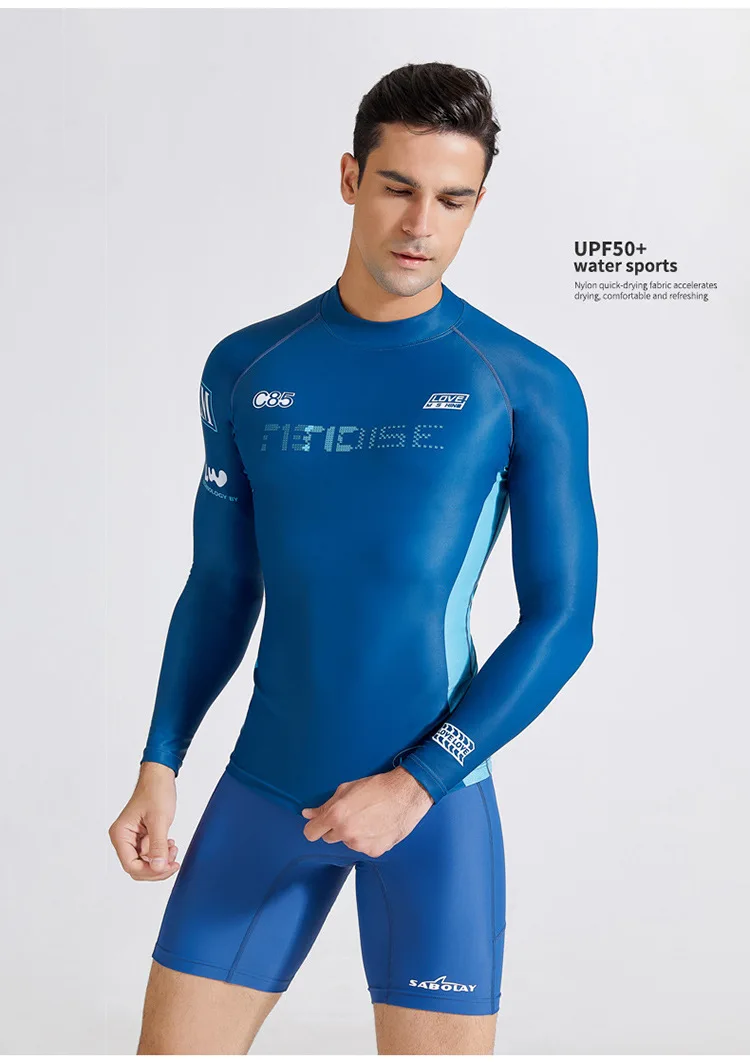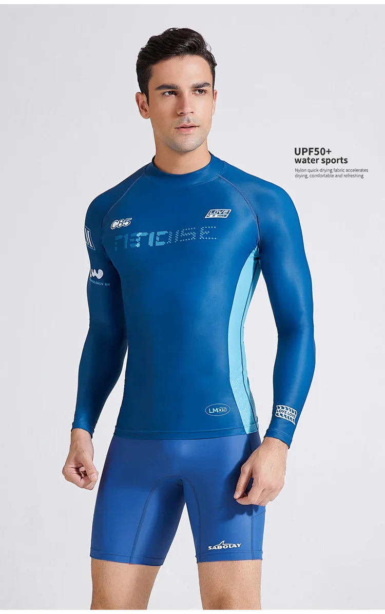 Мужская плавательная футболка, купальник, пляжный УФ-защитный раздельный гидрокостюм с длинными рукавами, облегающий Быстросохнущий костюм для серфинга, футболка