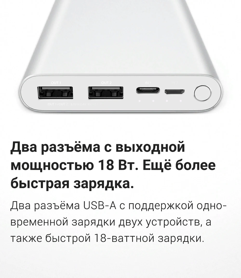 Внешний аккумулятор XiaomiMiPowerBank3, ёмкость 10000мАч, мощность1...