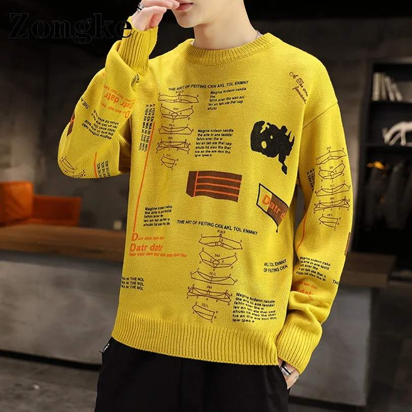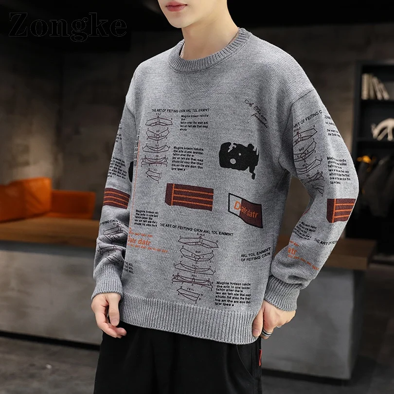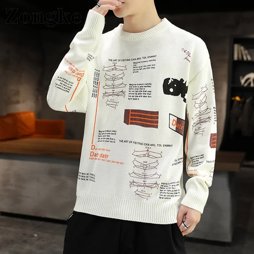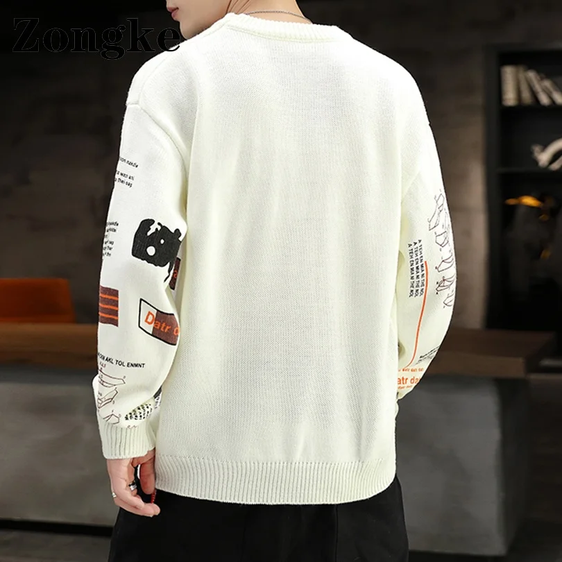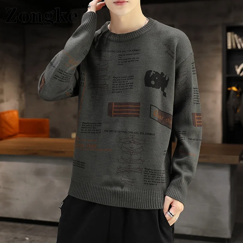 Свитер Zongke с графическим рисунком, Мужская одежда, корейский модный мужской свитер, пуловер, винтажная одежда, трикотажная одежда в стиле хип-хоп, 2XL 2022, весна