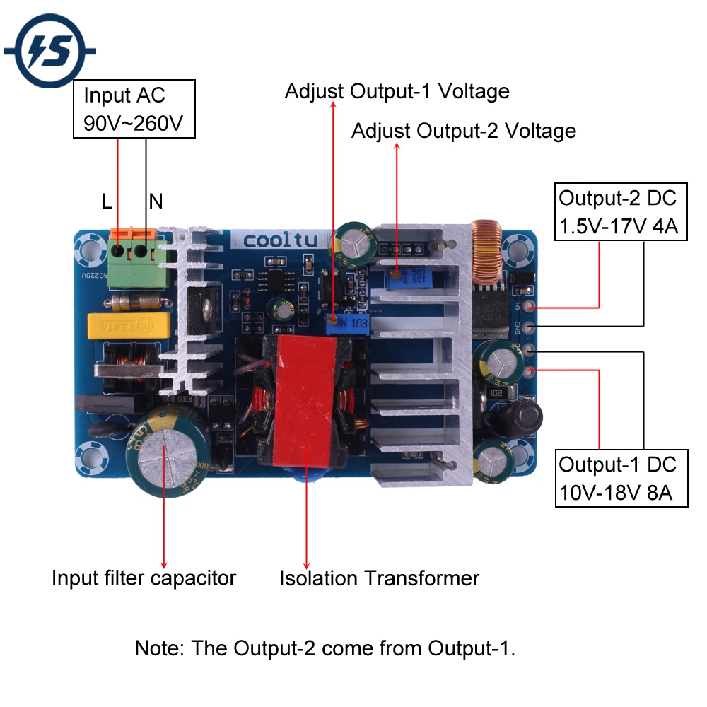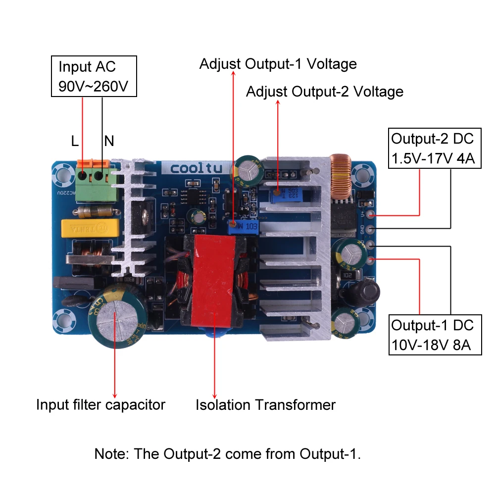AC-DC преобразователь переменного тока 110 В 220 В до 10 В-18 в8A 1,5 В-17 в4A 96 Вт dua-модуль питания Регулируемый понижающий модуль
