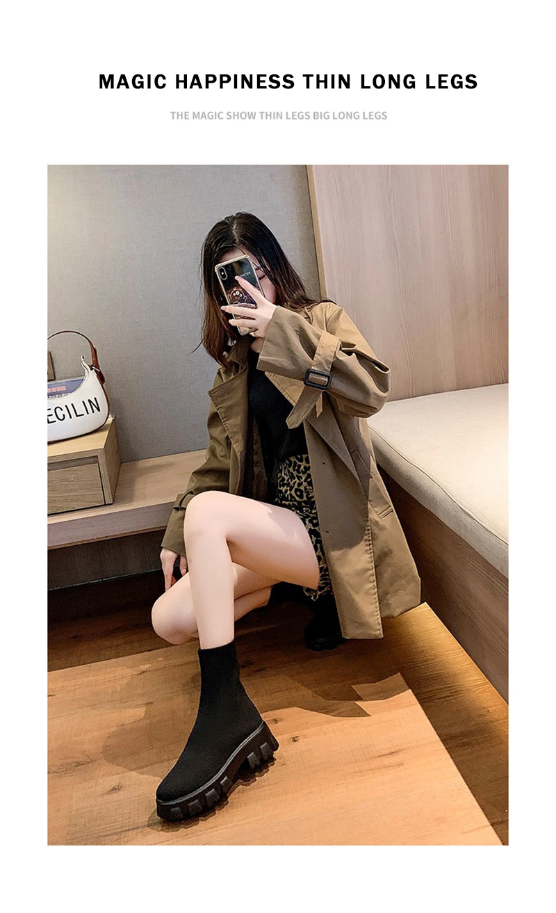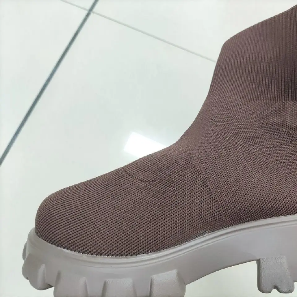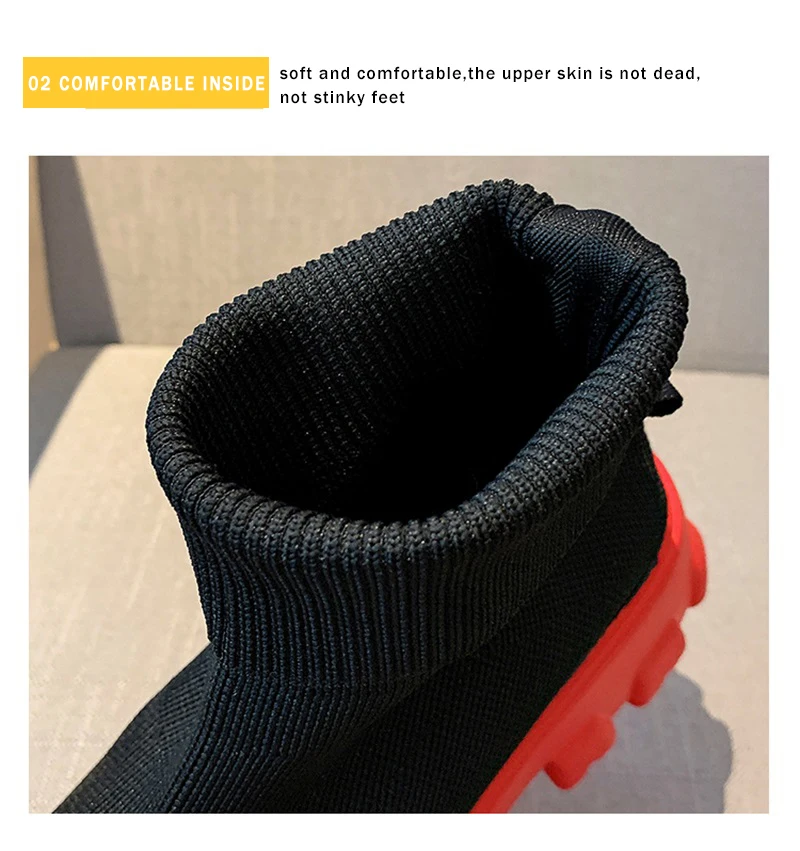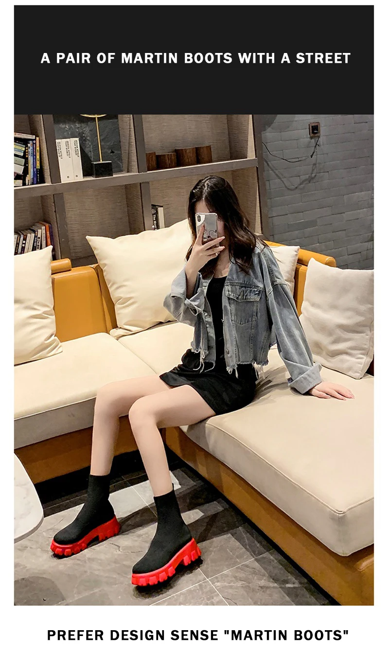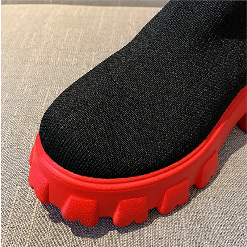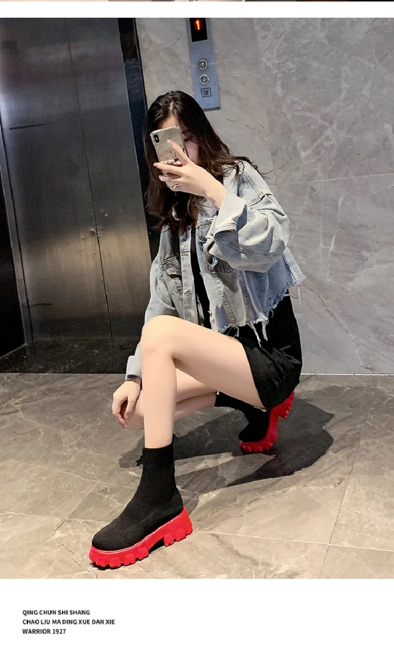 Новые осенние носки; Женская обувь из эластичной ткани; Повседневные ботинки до середины икры на платформе; Красные вязаные короткие ботинки; Женские ботинки; Большие размеры