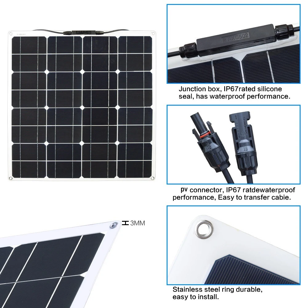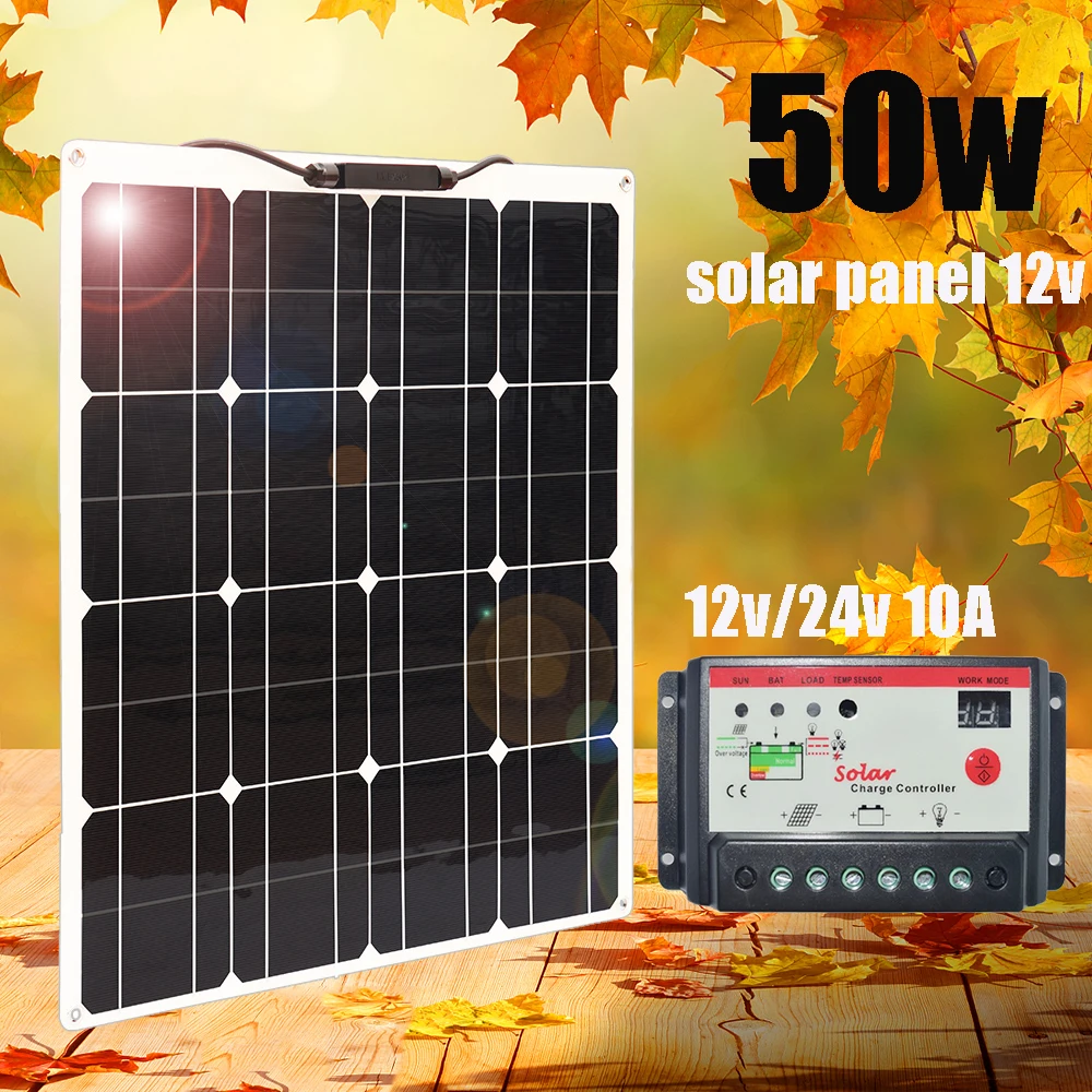 Солнечная панель 12v 50w 100w Полный комплект портативная солнечная батарея заряда 10А контроллер 5m удлинитель для автомобиля морской кемпер