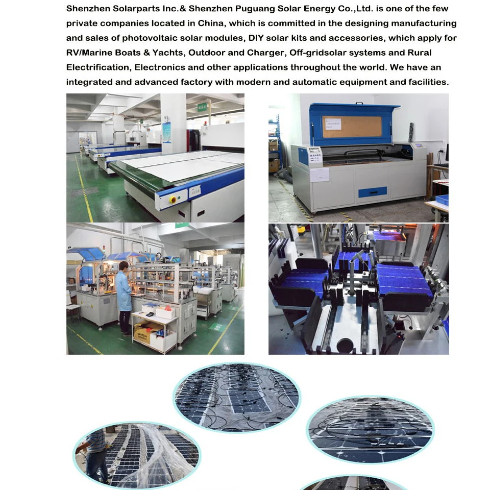 Материал: монокристаллическийТип: ГибкийЦвет: черный спереди и белый сзадиМаксимальная мощность: 50 Вт (одна штука)Максимальное напряжение питания: 16 ВМаксимальная мощность тока: 2.84AРазмер: 545 мм * 534*3 мм
