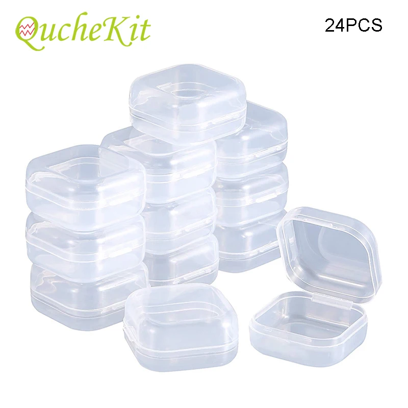 24 шт., мини пластиковые контейнеры для хранения, коробка, прозрачные ювелирные изделия, серьги, органайзер, чехол, квадратная коробка, портативный держатель для таблеток