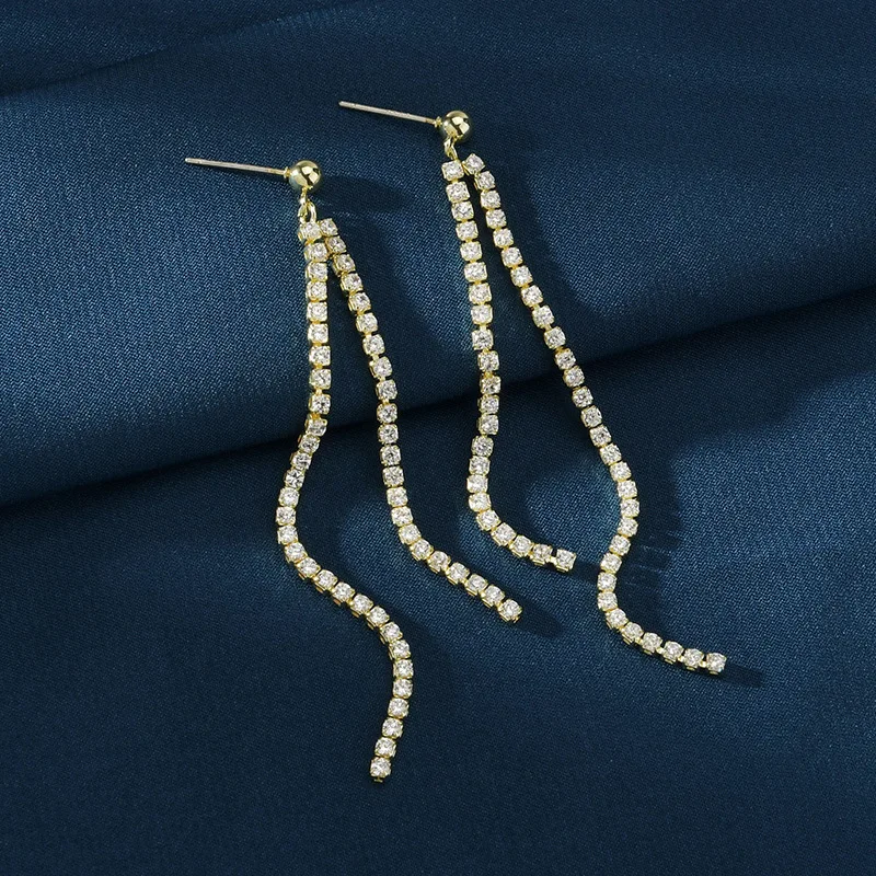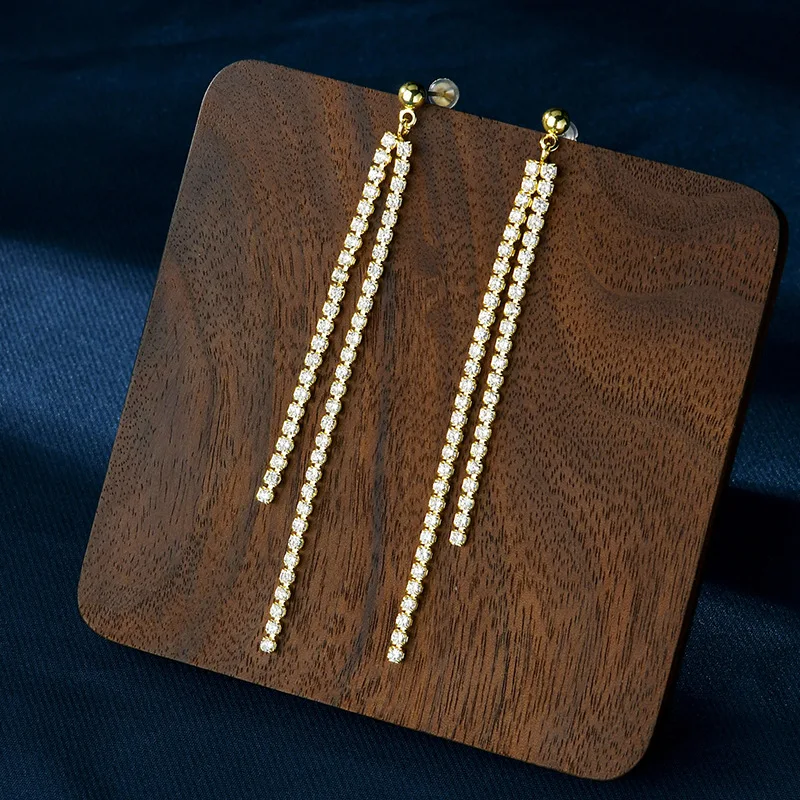 Женские длинные серьги с фианитами, серебристые и золотистые серьги...