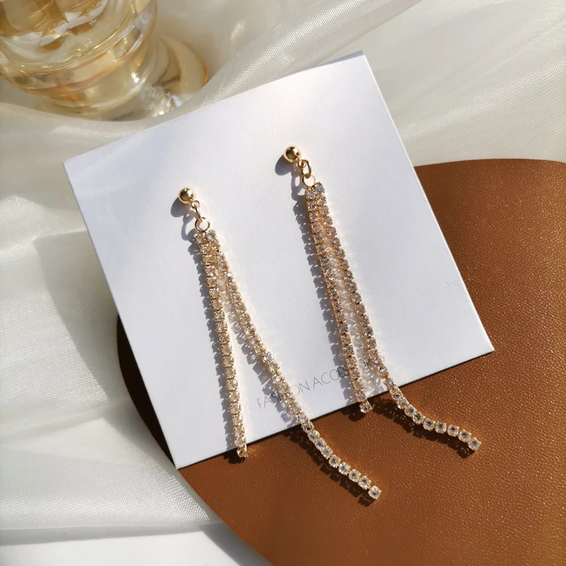 XIALUOKE S925 игла 2021 тренд длинные кисточки серьги с подвесками и стразами для женщин легкие Роскошные хрустальные цепи серьги ювелирные изделия