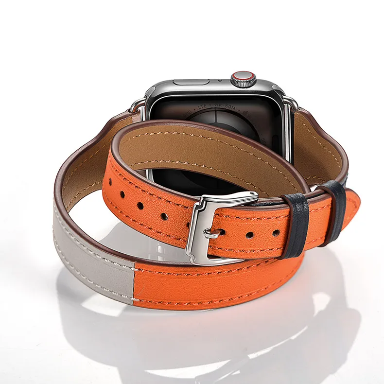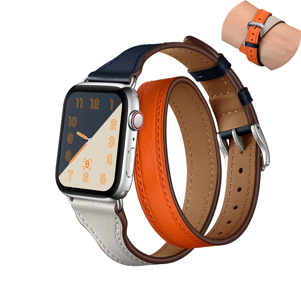 Кожаный ремешок для Apple Watch 44 мм 40 мм 45 мм 41 мм 42 мм 38 мм Iwatch двойной тур браслет на запястье apple watch 3 4 5 6 se 7