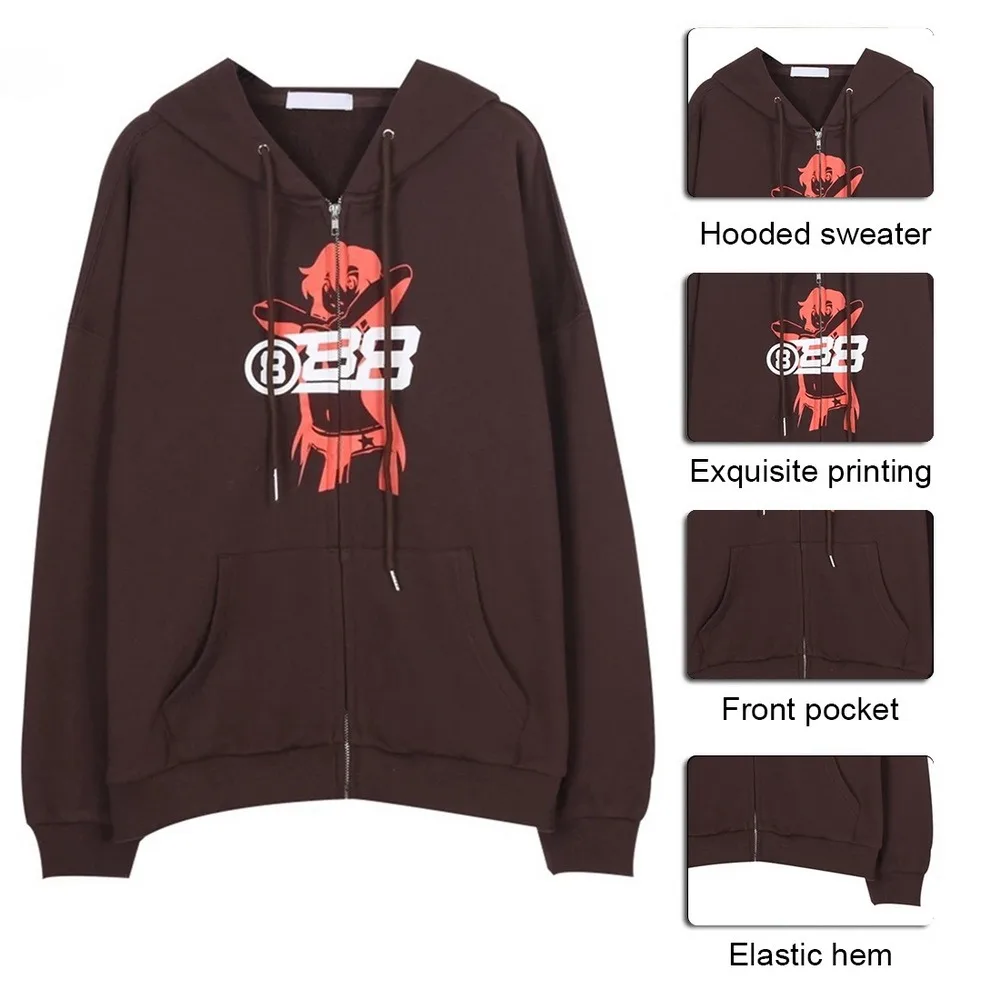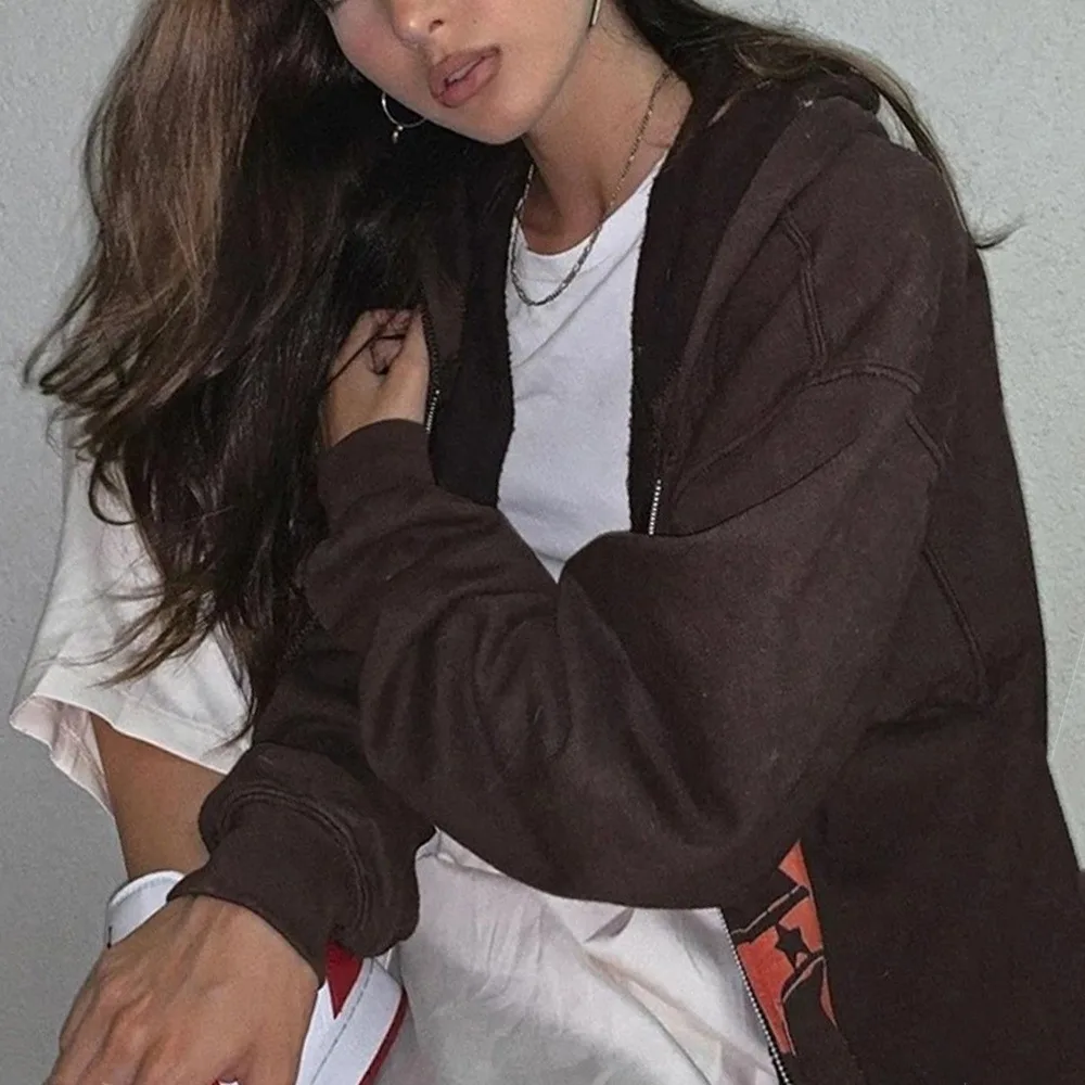Женские толстовки в Корейском стиле 90-х на молнии, винтажный корич...
