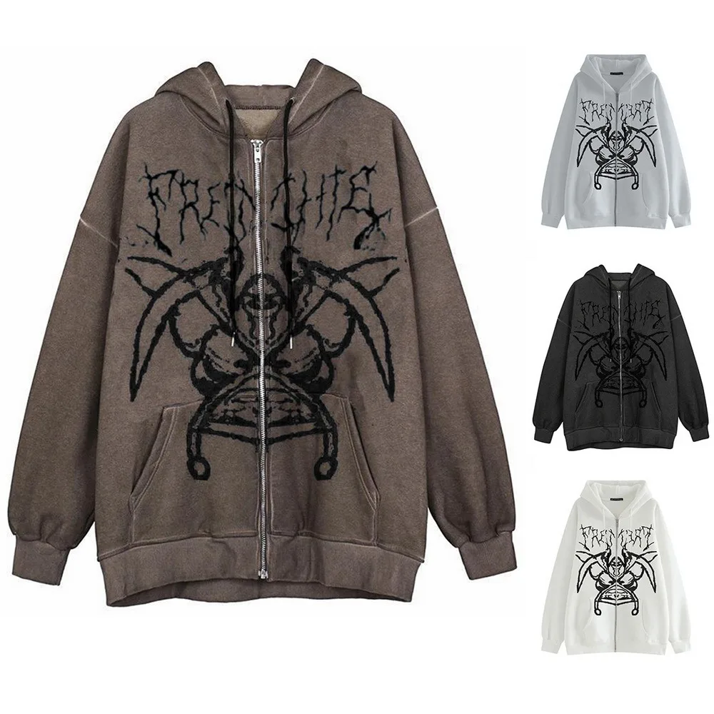 Женские толстовки на молнии Y2K в Корейском стиле, винтажный одното...