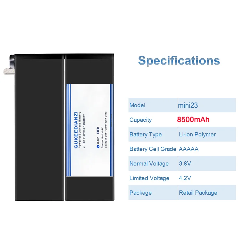 Model Capacitymini2/3 8500mAh