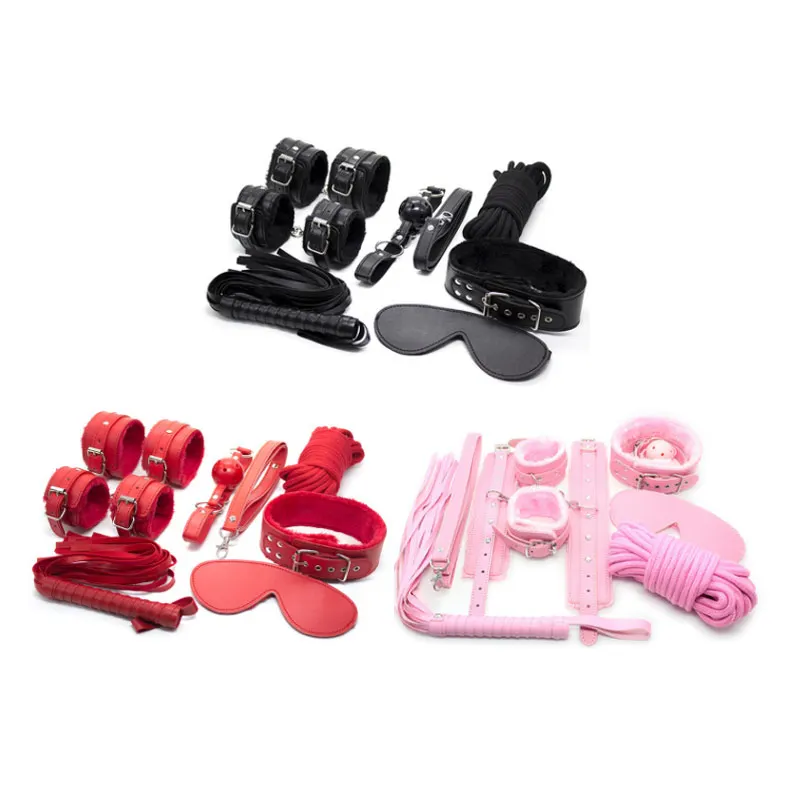 7 шт./компл. БДСМ набор Связывание кожа сдерживающие наручники рот датчик веревка кнут эротические аксессуары Фетиш Секс-игрушки для взрослых игр