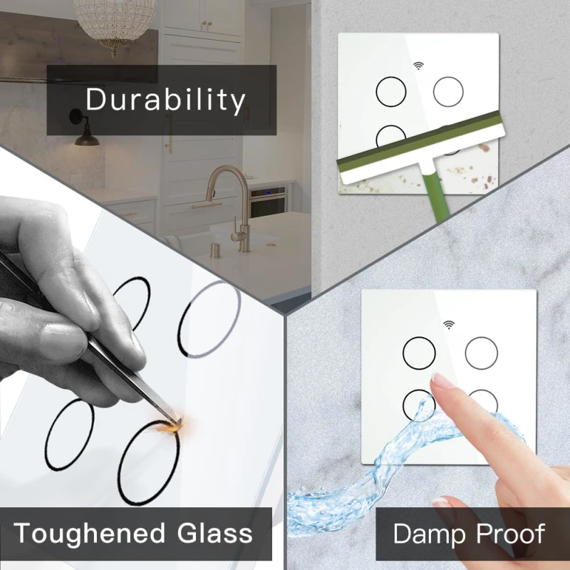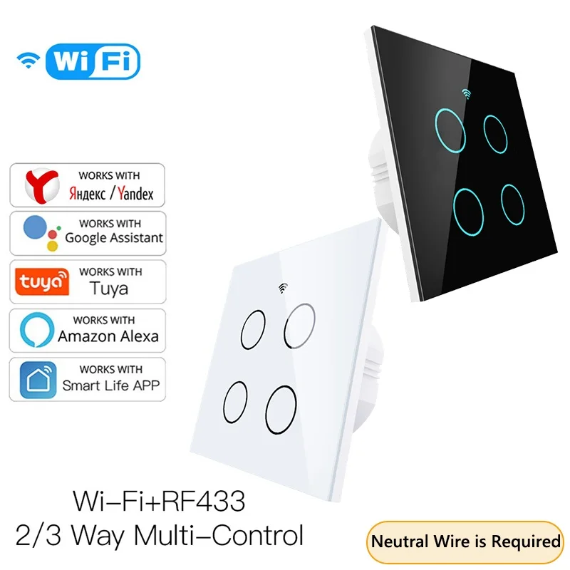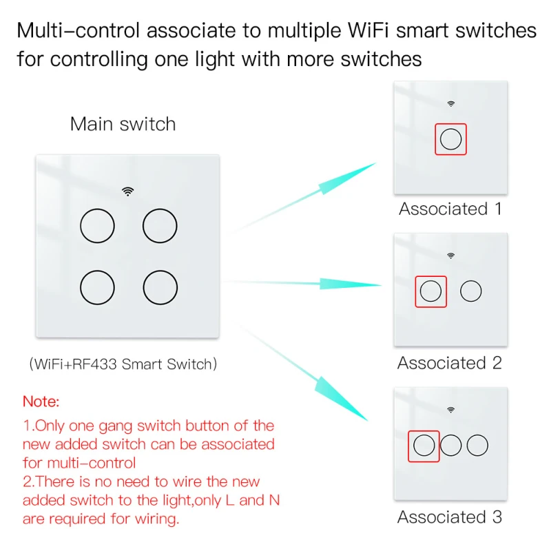 1. Новая идея для цепи 2/3 (два переключателя управляют один светильник), которая объяснена как мультиуправляемая связь этого переключателя с другими смарт-переключателями WiFi в приложении; Емкостное сенсорное управление, Включите/выключите светильник одним касанием и устойчивостью к царапинам стеклянная панель дает лучший вид, чтобы сочетаться с любым дизайном стены. (Примечание: Вы можете управлять несколькими связями этого переключателя с несколькими различными переключателями, но несколько банд на одном коммутаторе недоступны, для мульти-контроля можно использовать только один переключатель.)