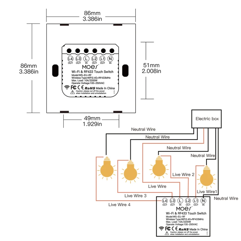 5. Нейтральный провод необходим в ваших коробках переключателей для правильной работы; Поддерживает только сеть 2,4G; Гораздо более легкое сопряжение m