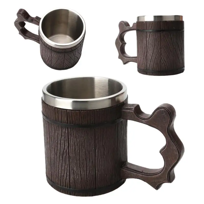 Кружка с имитацией черепа и дракона, 500 мл, кружка для пива в деревянном стиле, кружка для питья с двойными стенками, металлическая Изолированная кружка для бара, аналогичная чашка