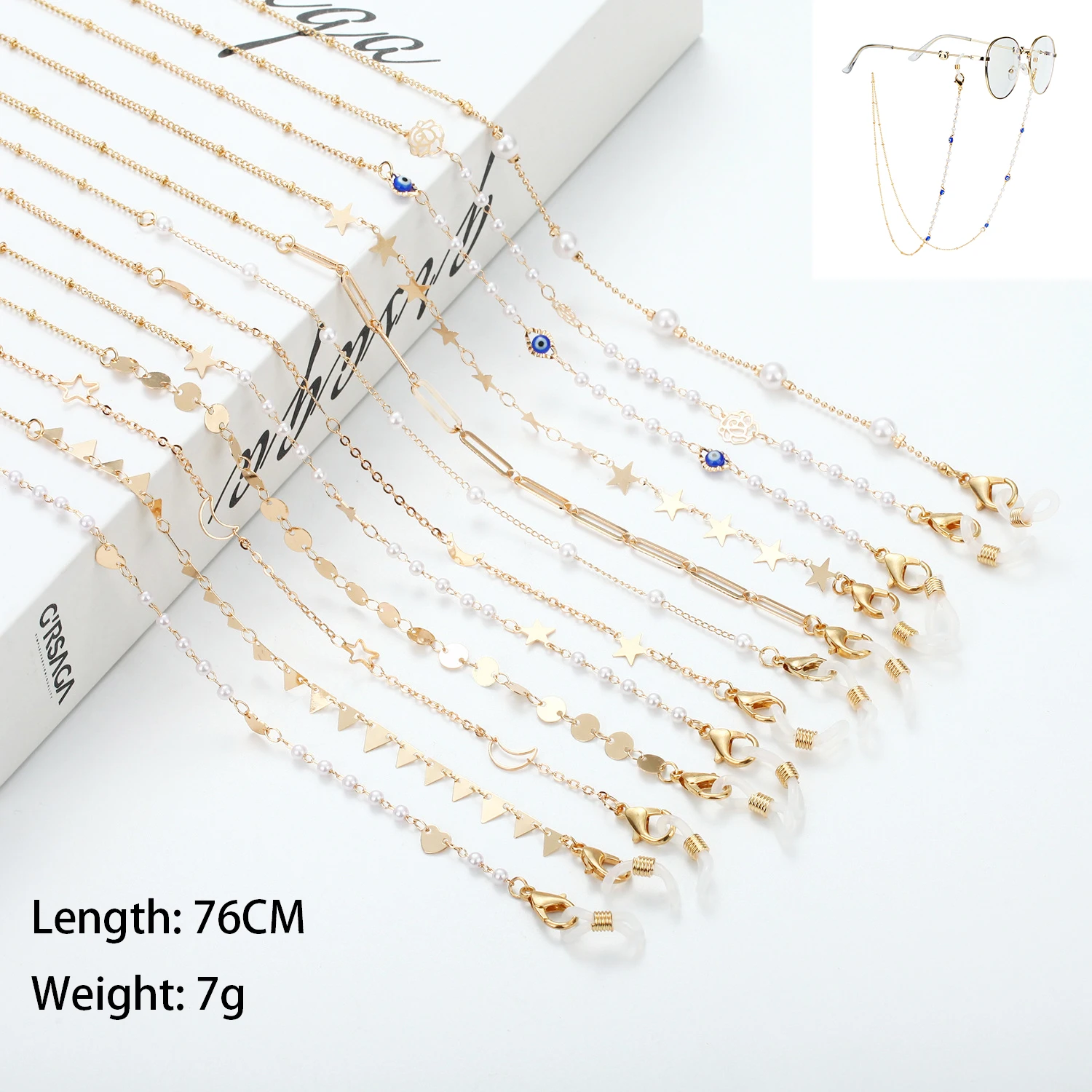Новинка 2021, модный полый держатель для солнцезащитных очков со звездой и луной, шнурок с цветком розы, диск очки с жемчугом, цепочка, ювелирные изделия для женщин, подарки