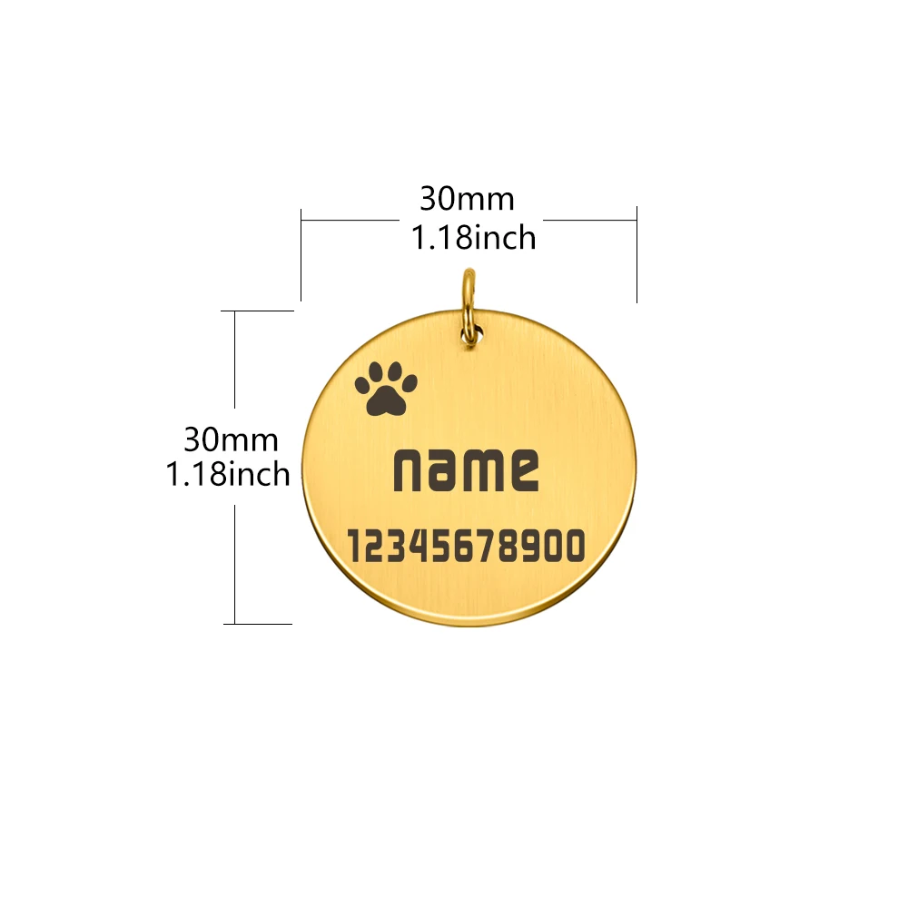 Стиль: идентификационные бирки для домашних животныхМатериал: нержавеющая стальФорма:Круглая подвескаЦвет: серебристый/золотой/розовое золото/черный