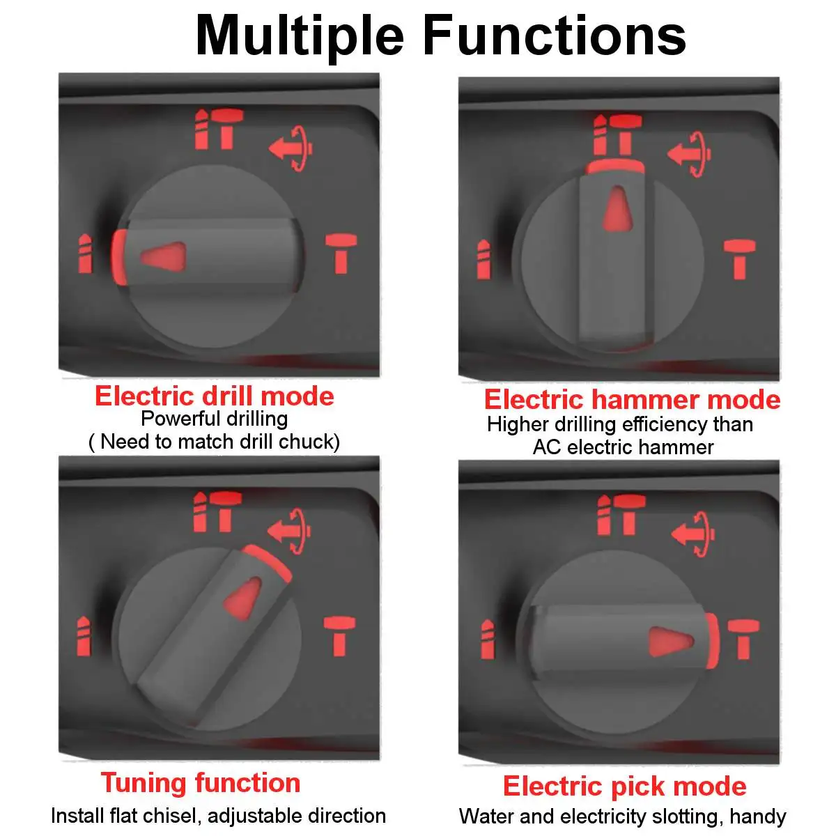-Машина в сочетании с функциями электрического молотка и электрической дрели. Поверните переключатель для преобразования функций.