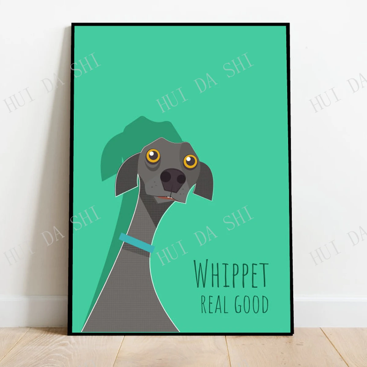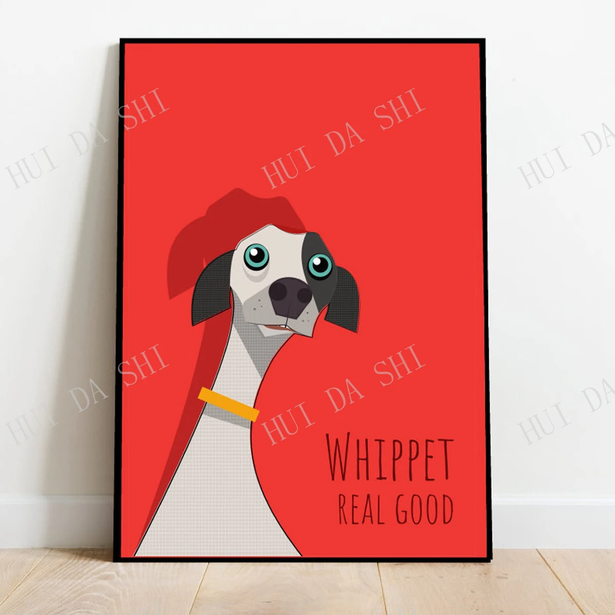 Whippet real good, ретро Середина века 1960s иллюстрация печатьпостер животных сканни-животные печать-постер собаки, собака искусство