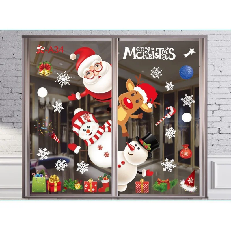 Рождественские Элементы, рождественские украшения, наклейки на окна, Бесшовные наклейки на окна, цвет