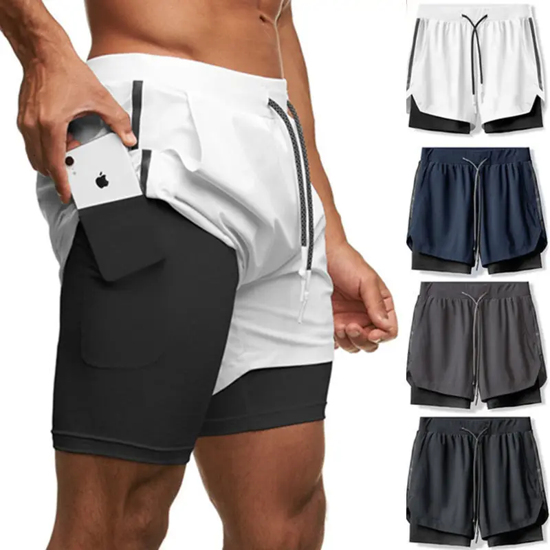 Шорты мужские спортивные 2 в 1, двухуровневые Короткие штаны для бега, фитнеса, бега, в зале