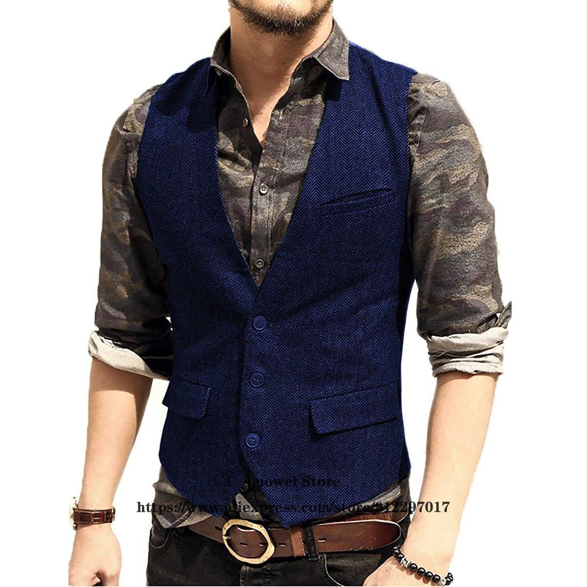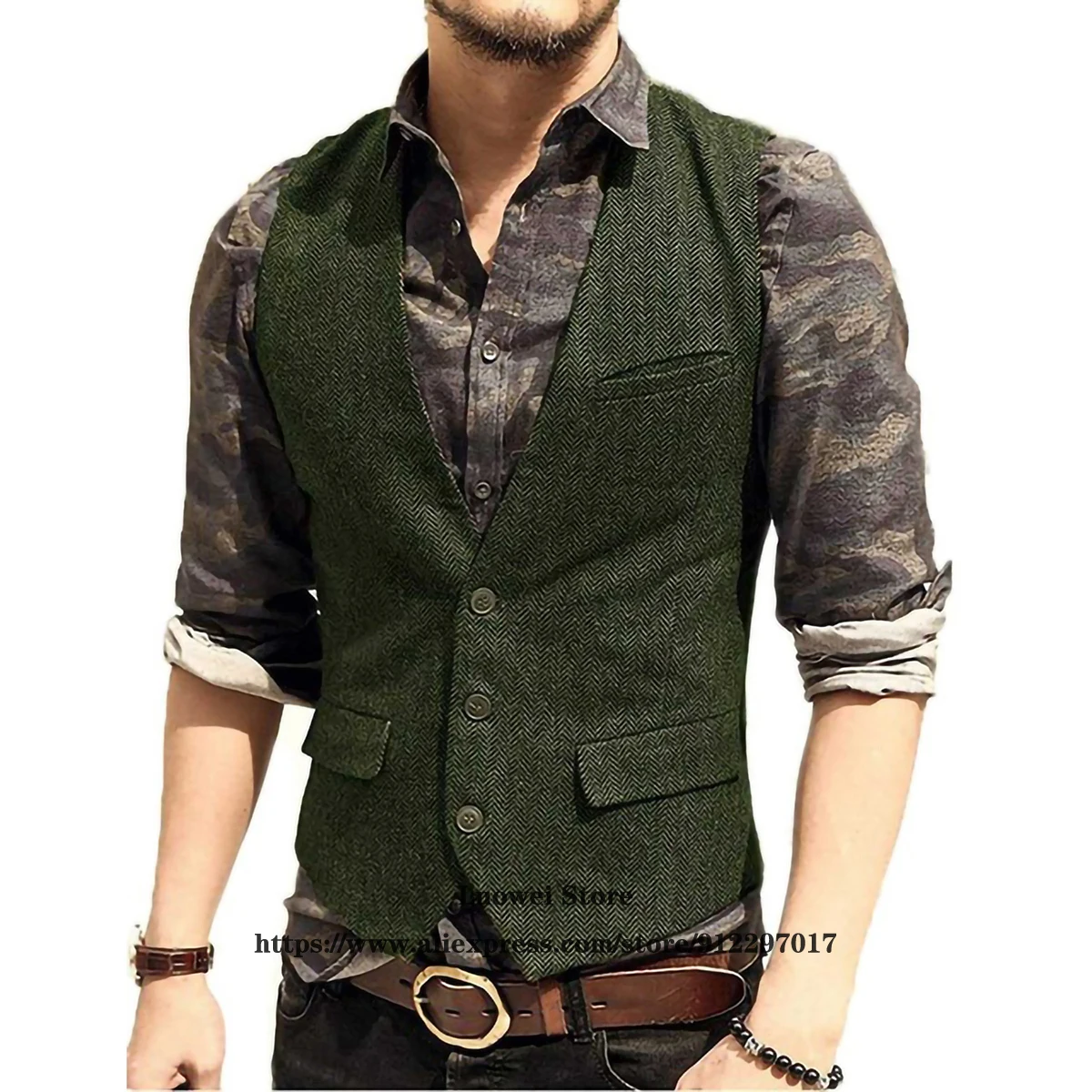 Жилет Мужской приталенный, твидовый жилет в елочку, повседневная куртка, брючный костюм
