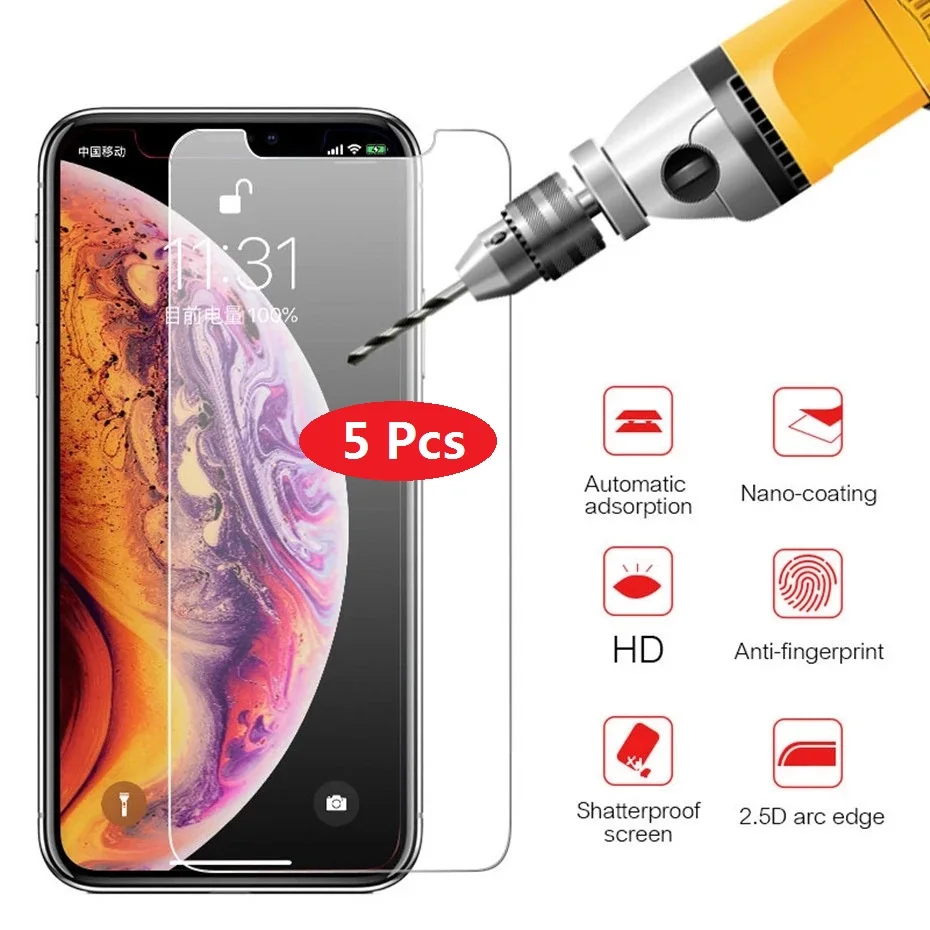 Закаленное стекло 9H для iPhone, Защита экрана для iPhone 12 Mini X Xs Xr 11 Pro Max 7 8 6 6s Plus SE 2020, 5 шт.