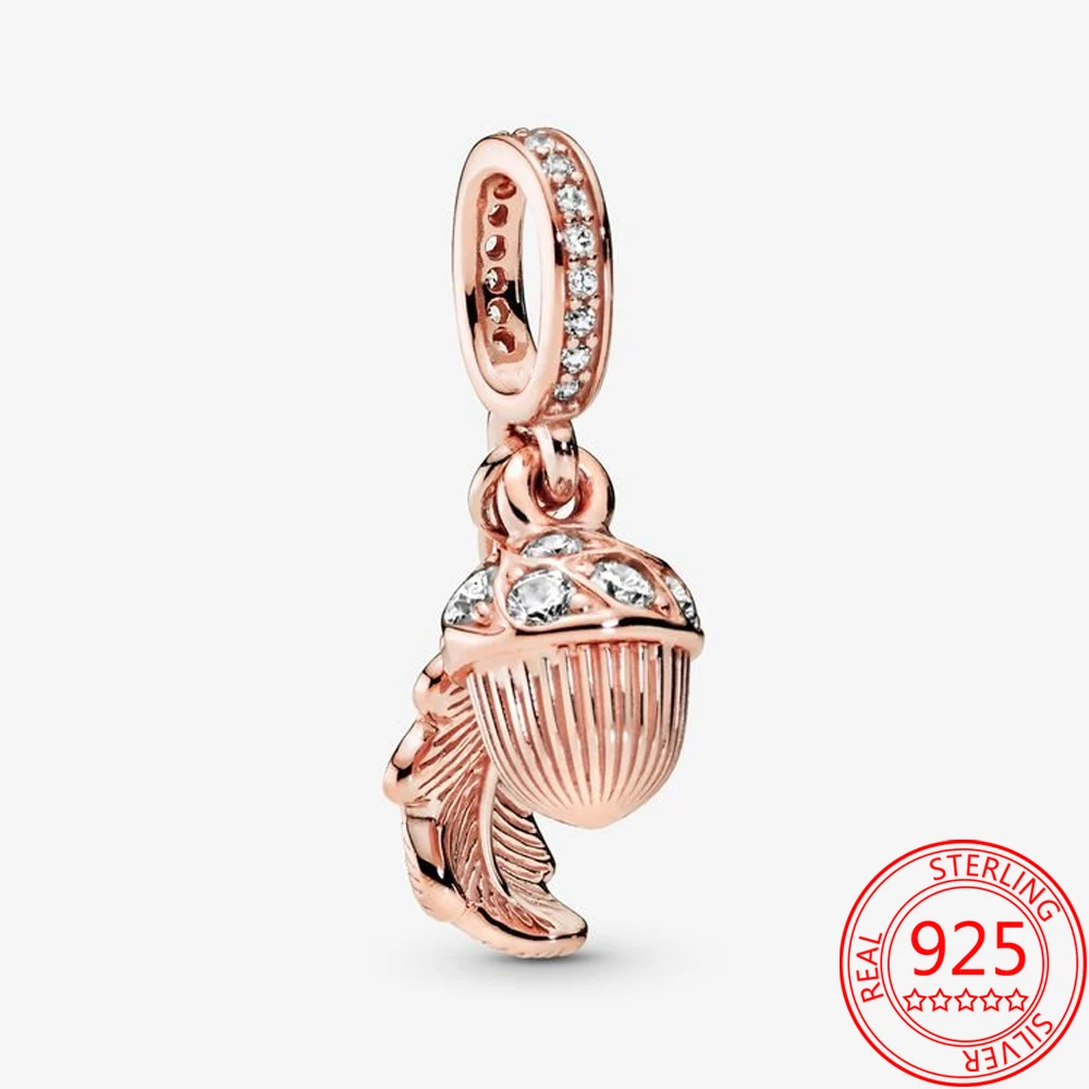 Великолепная фотография Подвеска из серебра, розового золота, дуба, листа, сосны, конуса, подвеска-Шарм, подходит для браслета Pandora, изготовление браслетов своими руками, ювелирных изделий