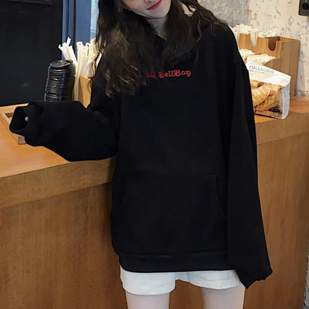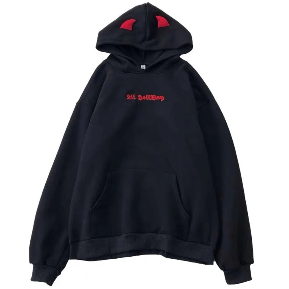 Женский готический костюм для косплея, толстовка с изображением маленьких дьявольских рогов и крыльев летающих демонов, Свитшот в стиле Харадзюку, Топы, Пуловеры в уличном стиле