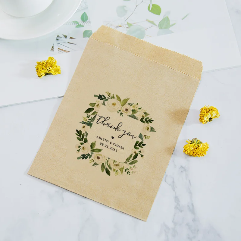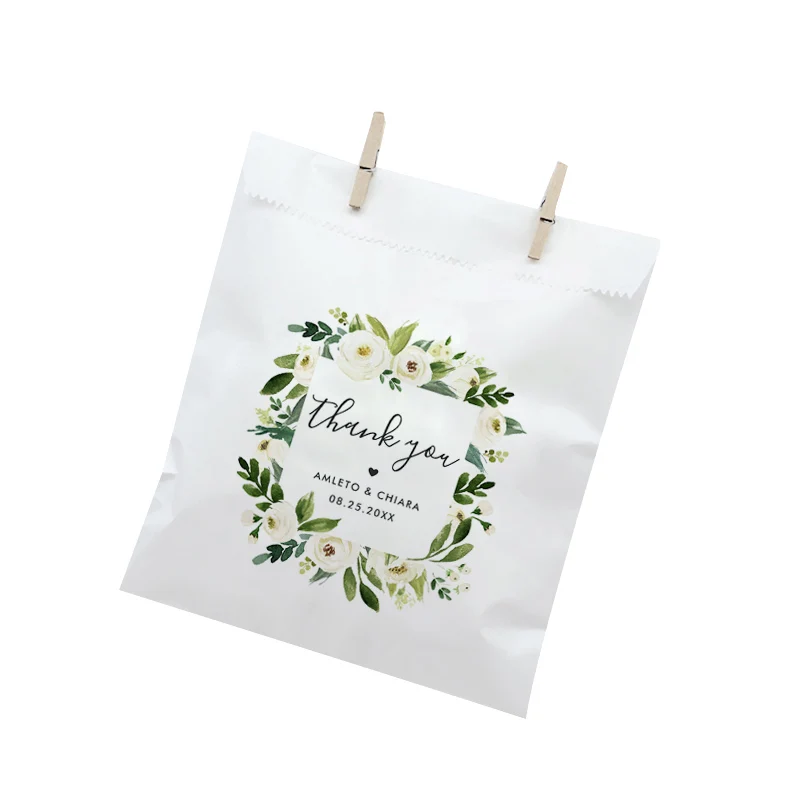 Персонализированные цветочные свадебные сумочки из алабастера, индивидуальное имя и дата, Подарочный пакет, Белыйкрафт-бумага для печеньяконфет