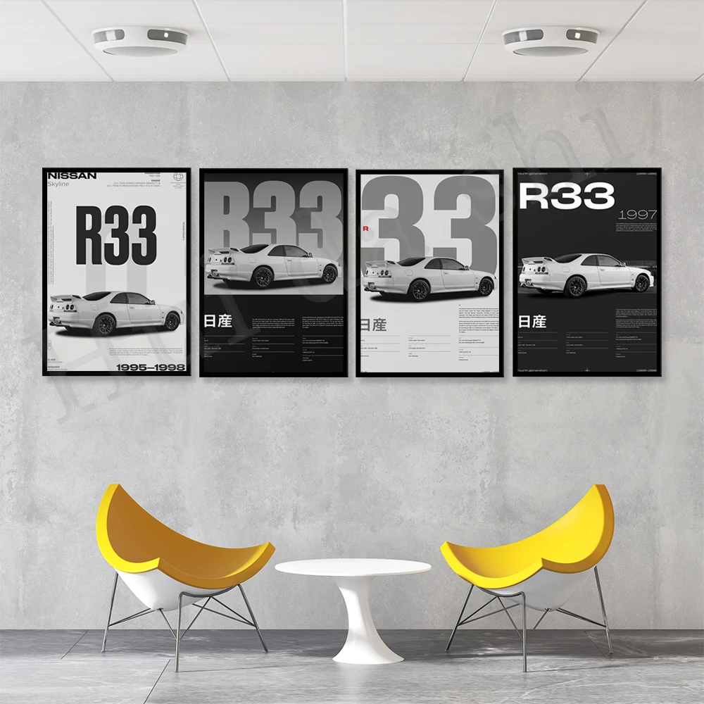 Цифровой печатный плакат Nissan Skyline R33 , JDM плакат с классическими японскими автомобилями, Nissan R33 плакат, Nissan R33
