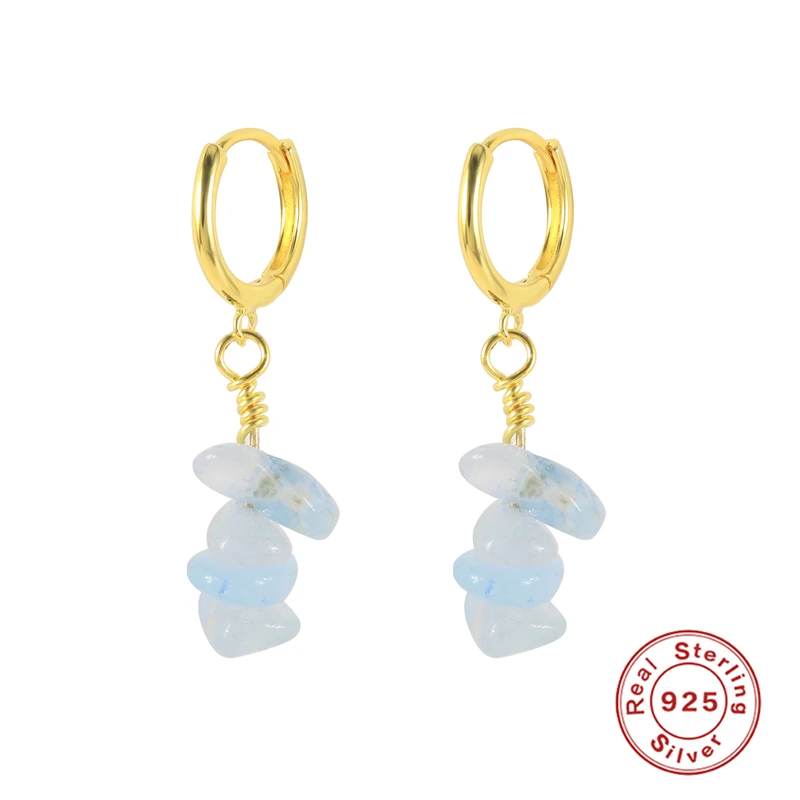 Серьги-кольца женские из серебра 925 пробы, с натуральным камнем