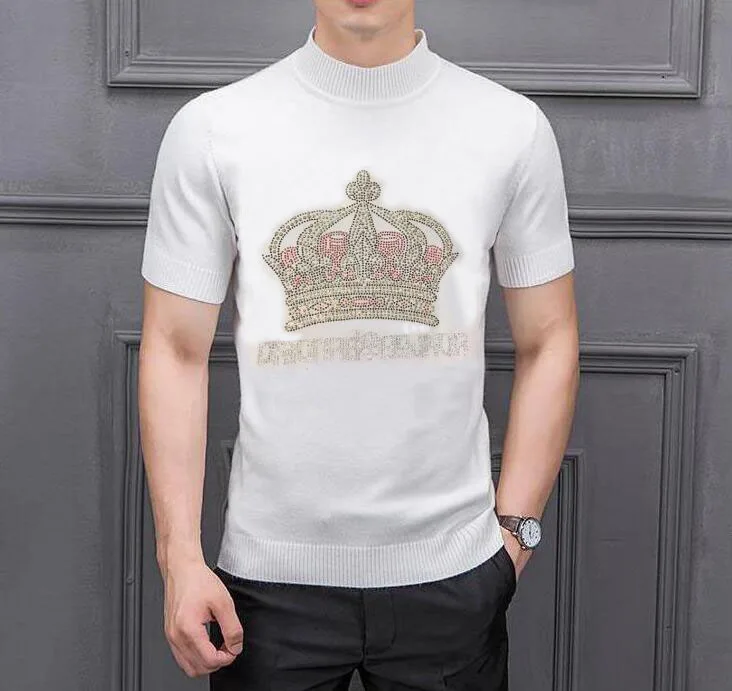 Летние модные мужские свитеры со стразами, футболка, тонкие вязаные мужские пуловеры с круглым вырезом и коротким рукавом
