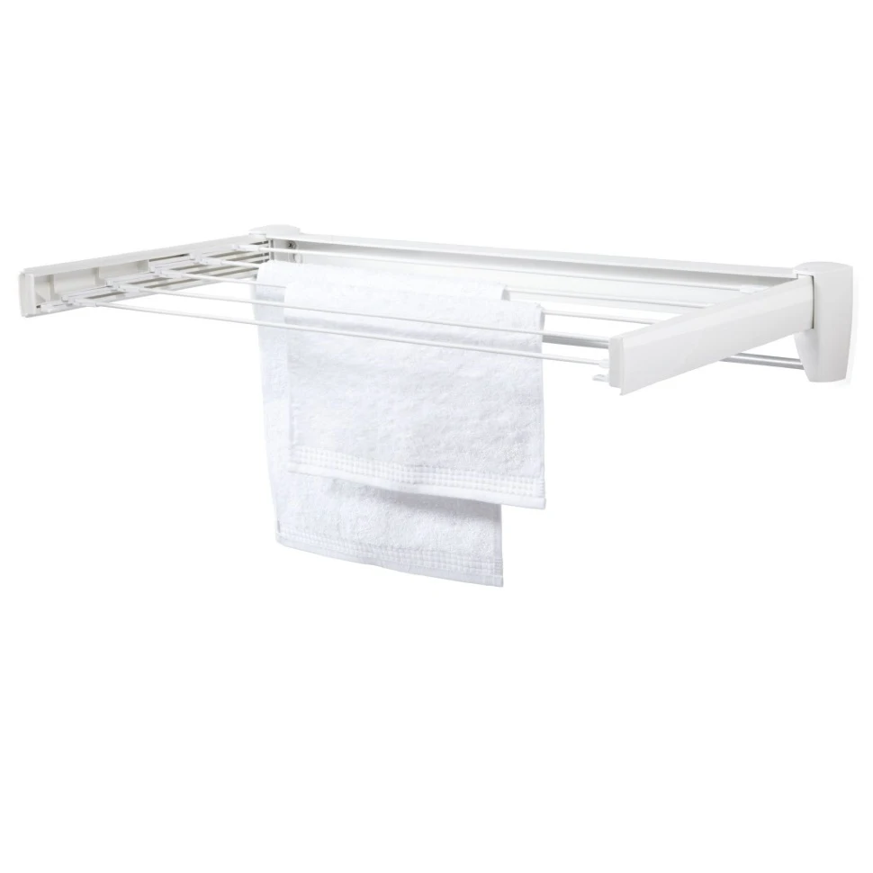 Устанавливается на стену, выдвижные створки с 5 струнами по 60 см + стержень для полотенец, струны из стали, покрытой полимерной порошковой эмалью, до 2 кг белья, размеры блока 70x5x10 см. Техническое описание 5 струн по 60 см Нагрузка: до 2 кг белья Материал: пластик Длина: 70 см Ширина: 5 см Высота: 10 см Вес: 1265 г
