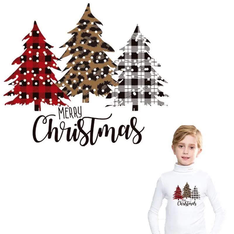 Наклейки на футболку с изображением рождественской елки, для самостоятельной стирки