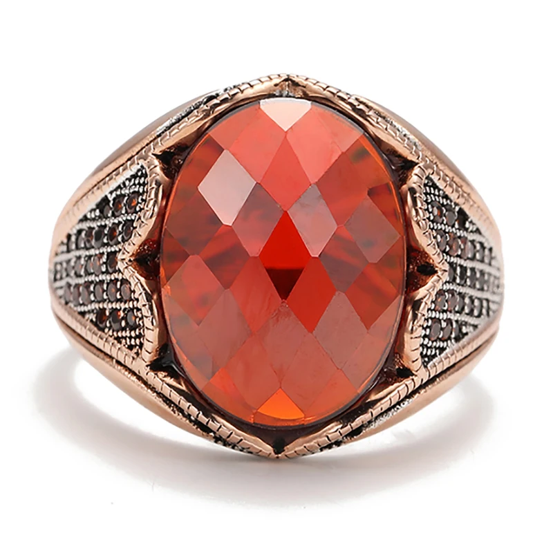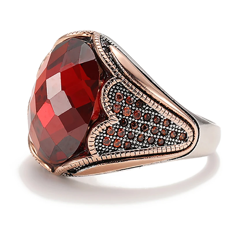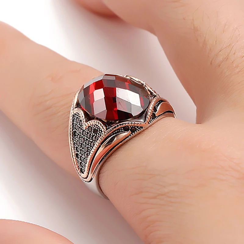 Кольцо мужское Винтажное с красным цирконом, оригинальное Ювелирное...