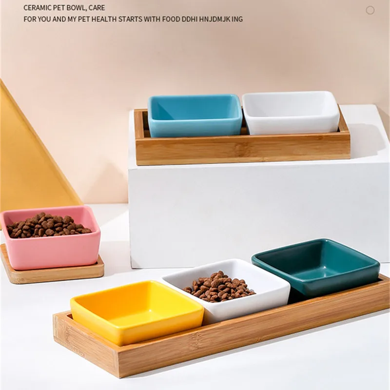 Керамическая Детская кормушка для щенков, котят с защитой от опрокидывания, легко чистится с лотком, квадратные товары для кормления домашних животных, несколько цветов на выбор