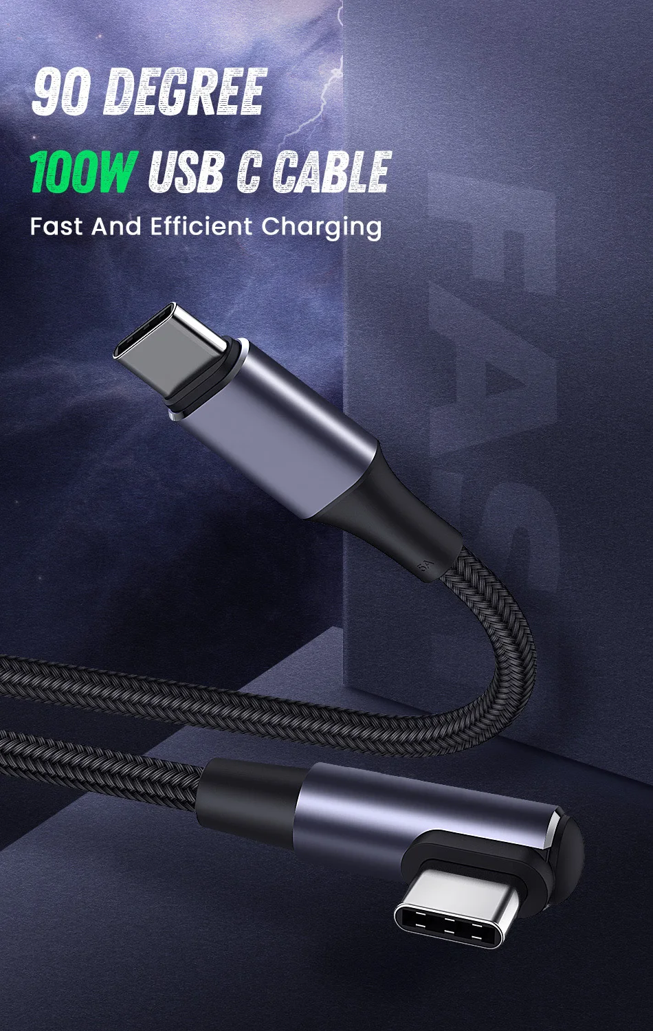 Кабель с разъемами USB C и USB Type C, 100 Вт, 90 градусов