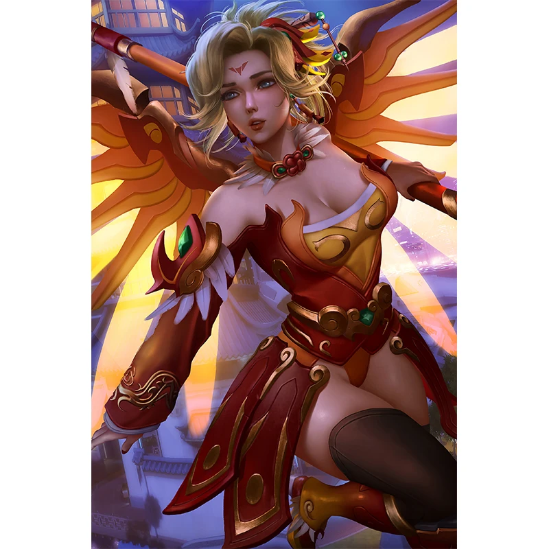 Печать на холсте Аниме игра Overwatch золотой ангел сексуальная дев...