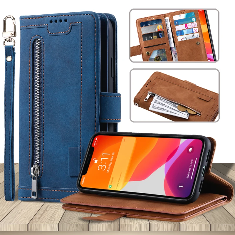 Для Samsung Galaxy A22 A52 A72 5G A12 A51 A71 A41 A40 A50 A20e Роскошный кошелек на молнии с отделением для карт флип кожаный чехол с подставкой для телефона