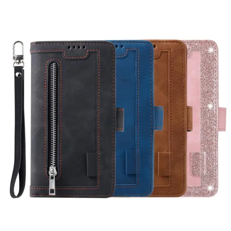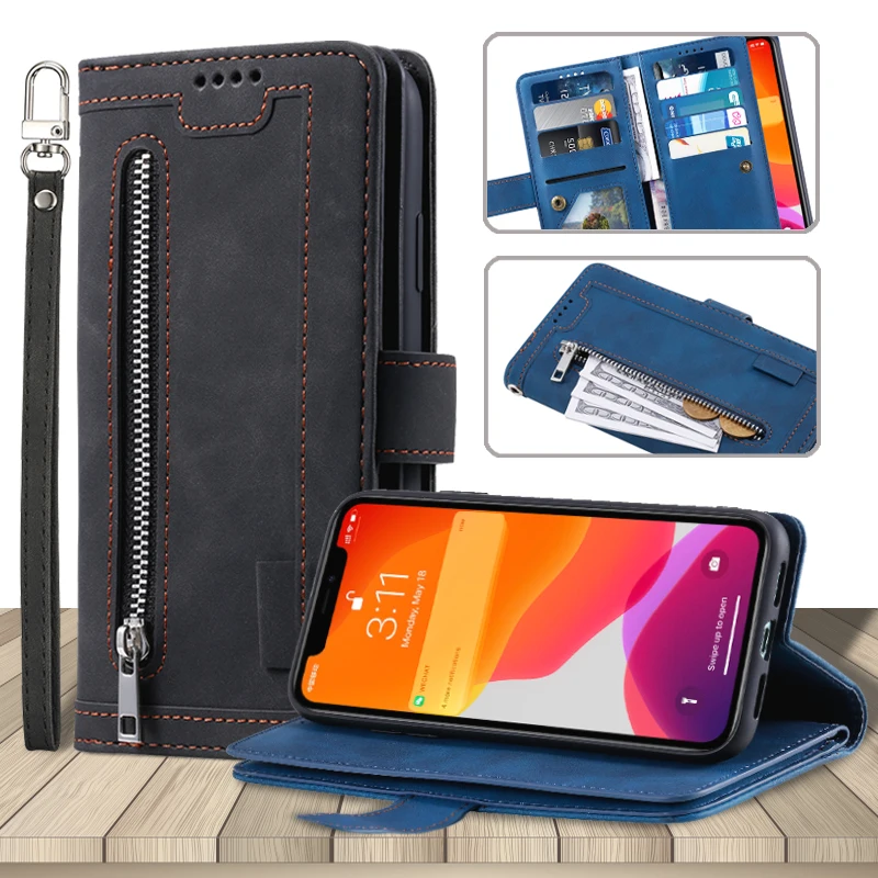 Чехол-книжка для Samsung Galaxy S21 Ultra S20 FE S10 Plus S10e 5G, с отделением для карт и молнией, кожаный, мобильный телефон